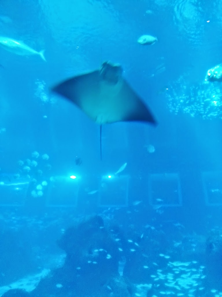 Didepan aquarium ini kita bisa duduk santai sambil melihat ikan manta (sejenis ikan pari) yang berenang melayang dengan sayapnya yang lebar. Ga banyak aktifitas yang bisa kita lakukan didalam SEA Aquarium ini selain jalan mengikuti jalur sambil melihat ikan didalam aquarium besar ini.
