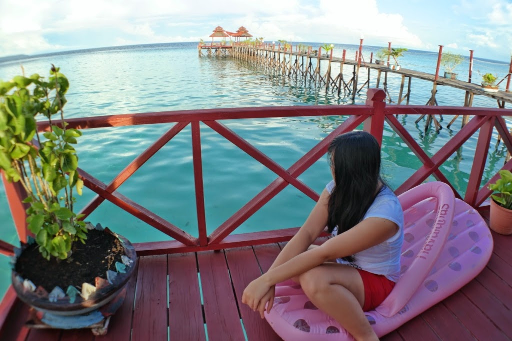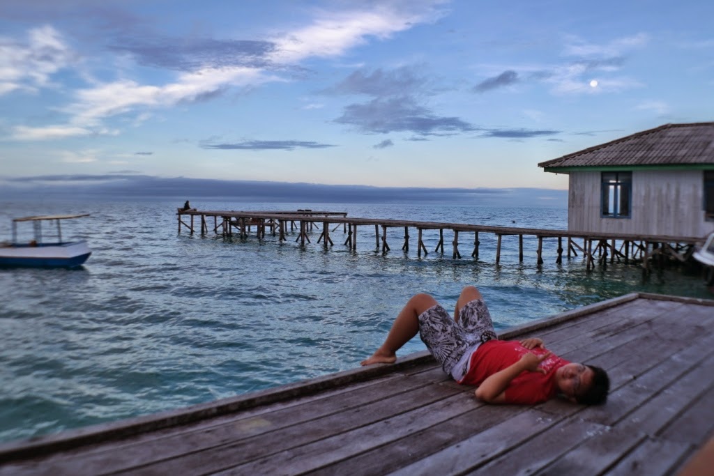 Pagi hari kita bisa melihat sunrise di dermaga penginapan, atau yang malas keluar kamar bisa nongkrong aja di teras kamar sambil melihat penyu-penyu berenang.