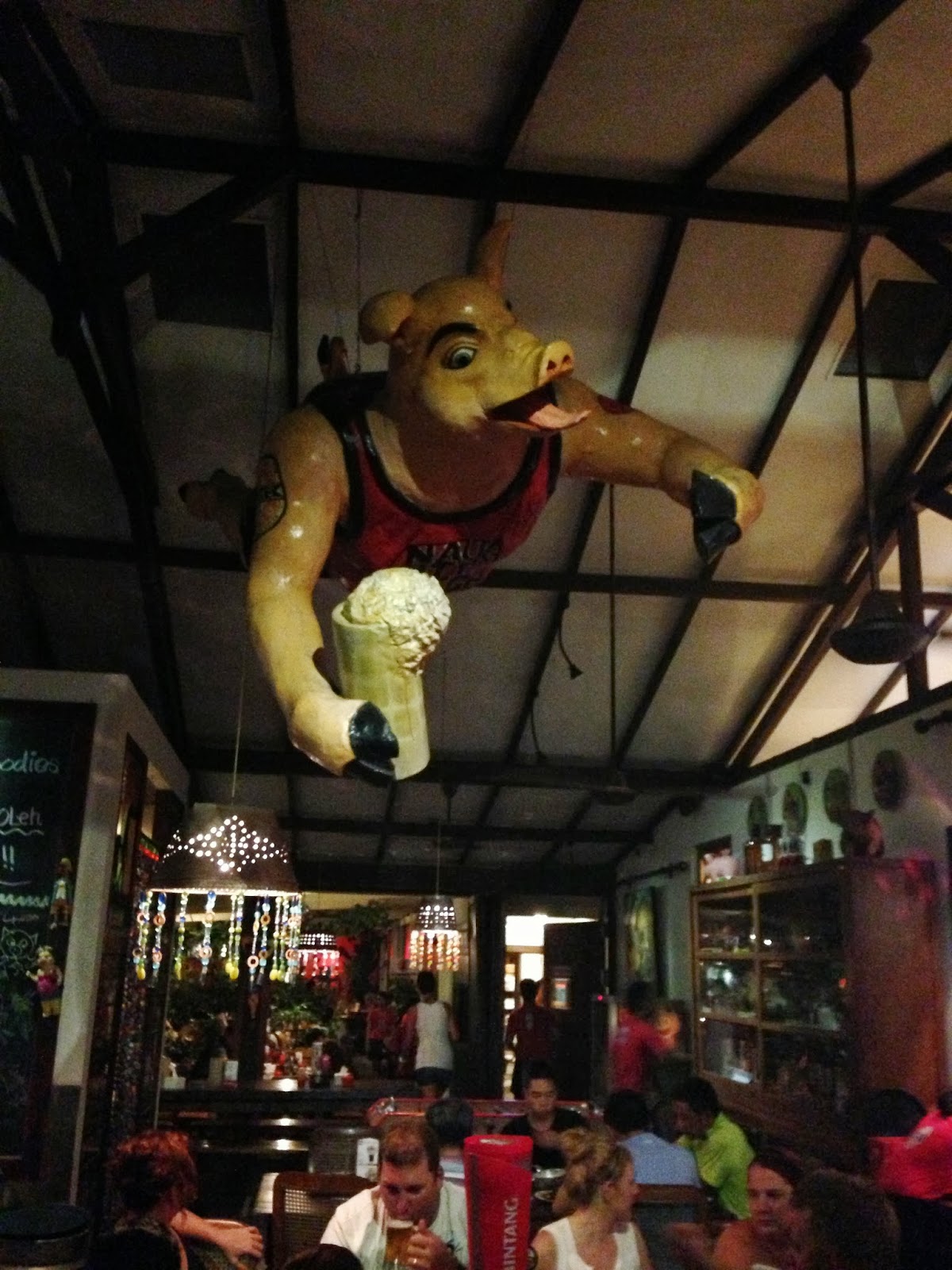 Makanan khas Belitung satu ini disajikan dari kepala ikan ketarap, berkuah kuning segar, dan ada nanasnya. Kita makan di Restaurant Pondok Kelapa di sebelahnya toko oleh-oleh “OKE:”